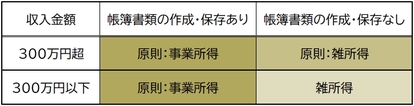 実際、国税庁の新通達も、「帳簿書類の保存がない場合は雑所得と扱う」「売上300万円超の場合は帳簿がなくても事業所得として認められる場合がある」としているのみです。