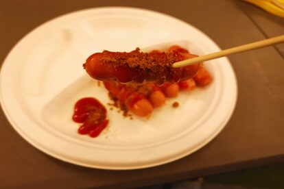 調理が終わったウインナーに、カレー粉とトマトケチャップをかければ「カリーヴルスト」の完成。ウインナーの本場ドイツではメジャーな食べ方で、屋台などでも売られている定番の料理である。