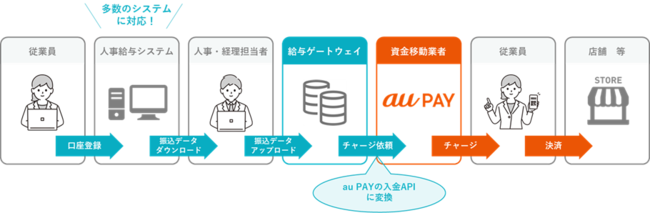この課題を解決するために、TISは「給与デジタルマネー払いゲートウェイサービス」の資金移動業者への導入および人事給与システム事業者との仕様合意を進めており、その導入先として「au PAY」が決定しました。