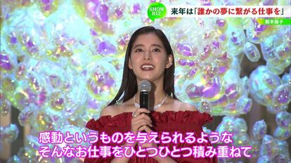 新木さんは、深紅のロングドレスに身を包み、来年の目標を語りました。