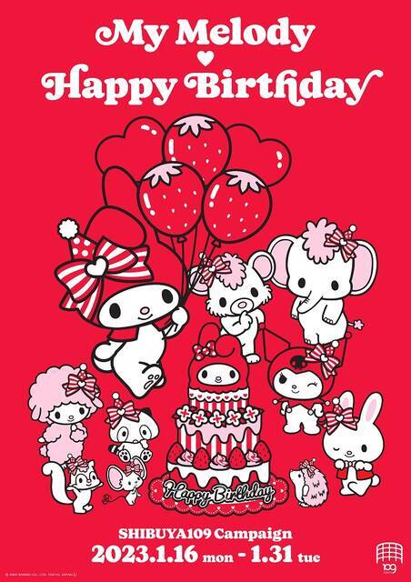 株式会社SHIBUYA109エンタテイメント(本社:東京都渋谷区、社⾧:石川あゆみ)は、東京・渋谷で運営する「SHIBUYA109渋谷店」にて、2023年1月16日(月)~ 1月31日(火)の期間、サンリオの人気キャラクター「マイメロディ」のバースデーをお祝いするキャンペーン『My Melody♡ Happy Birthday SHIBUYA109 Campaign』を開催いたします。