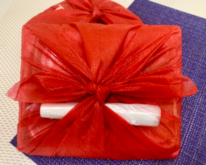 赤い風呂敷風のラッピングに包まれてお得な1,000円で販売しています。