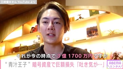 “青汁王子”三崎優太さん、暗号資産で巨額損失「13億1000万円入れていたんですよ。それが今の時点で、3億1700万円」「吐き気が出る最悪」 | ニコニコニュース
