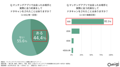 マッチングアプリ利用者の44%は、ドタキャンされた経験あり ドタキャン撲滅に向け、マッチングアプリ『Omiai』が注意喚起 | ニコニコニュース