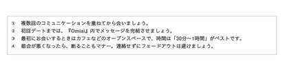 1. 複数回のコミュニケーションを重ねてから会いましょう。