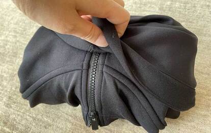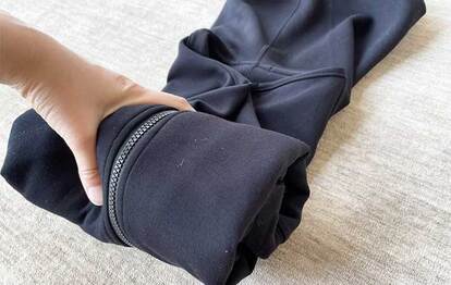 羽織りのパーカーは体温調節などに便利で旅行に役立ちますが、かさばってしまうのが悩みの1つでした。この方法なら、かなりコンパクトに持ち運べそうです。