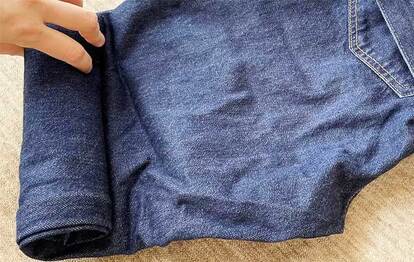 ボトムスはウエストの部分を折り返します。トップスのすその時と同じ要領です。