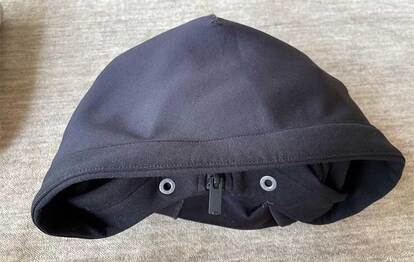 フードの大きさに合わせて、袖と肩の部分を内側に折り込みます。