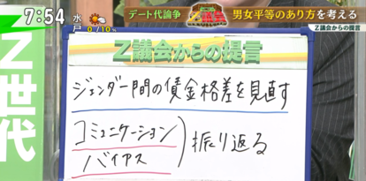 こうした結果に、政治プラットフォーム「PoliPoli」代表のZ世代・伊藤和真さんは「男性が払いたければ払えばいいし、女性側もおごってくれる男性が良ければ、そういう人と付き合えばいい」とあくまで個人の自由というスタンス。調査結果で男女間にギャップがあることについては「ある程度社会的に解消すべきだと思う」と話します。