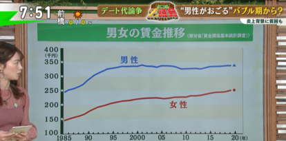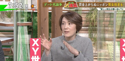 こうした状況に、河崎さんは「そもそも男女の賃金格差が放置されたまま、女性に対して年収の多い男性がおごるべきという根底の期待があるが、本来はこれを社会の前提としていることをおかしいと思わないといけない」と問題視。さらに「女性が男性並みに稼げていれば“自分の食いぶちくらい自分で出す”、“今日は私がおごる”となるが、そういう会話が出てこないこと自体が日本社会の男女問題の限界」と声を大にします。