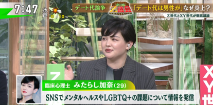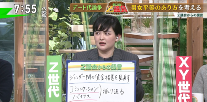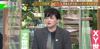 Z世代の臨床心理士・みたらし加奈さんは、近畿大学の調査で「おごられたい」女性が7%だったことから、若者の誰もがデート代を男性が払うべきと考えていると一括りにするのはナンセンスとし、今回の論争に関しても「おごられたい人のほうが少数派なのかもしれないし、その少数派とおごりたくない人たちの争いのようになっていて、これを男女間の論争とすることすら俯瞰して見てしまう」と指摘。