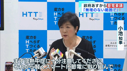 小池知事:「まずは熱中症に十分注意してください。それから賢くスマートに節電に取り組んでください。大体全てやり尽くしているところもあるが、改めて皆さんご協力を。みんなで夏を乗り切っていきたい」