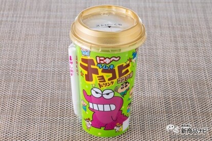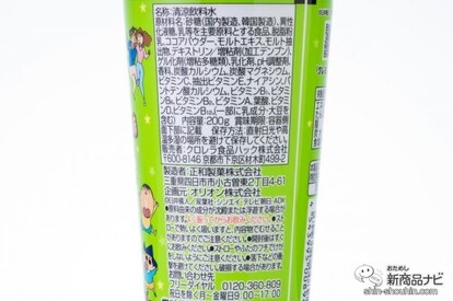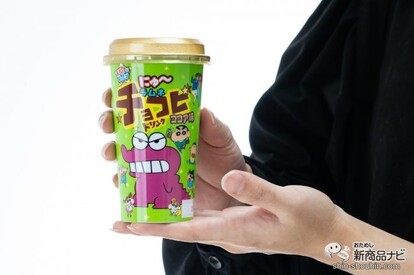 『にゅ~ラムネチョコビドリンク』(200g・参考価格 税込203円・期間限定発売中)は、クレヨンしんちゃんでおなじみのお菓子を再現したドリンク。オリオン株式会社のお菓子「にゅ~ラムネチョコビ」とのコラボ商品で、ラムネチョコビがココア味のカップ飲料に大変身。