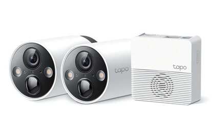 バッテリー内蔵型のワイヤレスセキュリティカメラ2台とハブのセット。AIによる検知機能や400万画素の高画質を備える。専用アプリでリアルタイム映像のチェックや管理が可能だ。