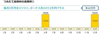 フジコ先生:もちろん、上限額を全額使い切らなくても大丈夫。例えば図表1のように、毎月3万円ずつ積み立てて、ボーナス月だけ上乗せするといった活用もできます。