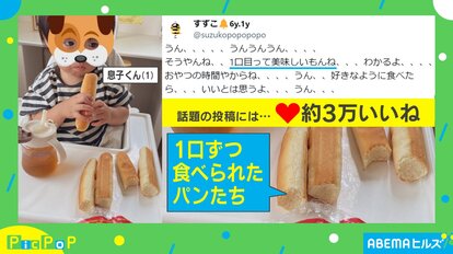 ニュース番組『ABEMAヒルズ』は、すずこさんを取材。当時の状況について「最初は1本だけ渡して食べさせていたのですが、長女の病院予約をしている隙に息子は机の上にあった袋を自分のほうに寄せており、『ほうほう』と言いながらパンを1本ずつかじっていたので諦めて好きに食べさせました」と明かした。