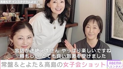 それぞれドラマで共演経験がある3人。常盤は9日、Instagramに「高島礼子さんとハロルドとモードの観劇前に女子会ランチ」と8月にオープンした、とよたがオーナーを務めるレストラン「ロジエ」を訪れたことを報告し、3ショットを投稿。「しゃべり倒しても時間が足りないくらい、お2人のお話は、ほんとに楽しい。美味しいお食事に、Happyトークで、気持ちがグングン明るくなるぅ」とつづった。