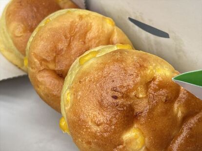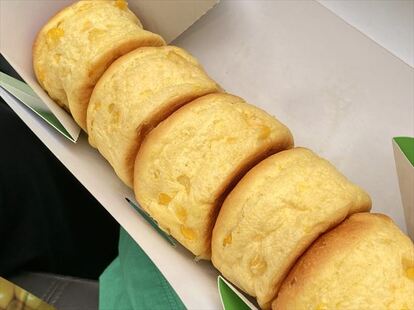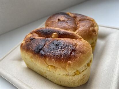 コーンぱんもまめぱんも、1箱5個入り、各1,500円(税込)、両方のパンを合わせて一人1日2箱まで購入できます。整理券などは配布されておらず、先着順です。公式サイトの情報によると、コーンぱんは1日平均5~8回程度の焼き上げで、生地の温度や発酵の関係上、パンの焼き上がり時間は日によって異なるそう。