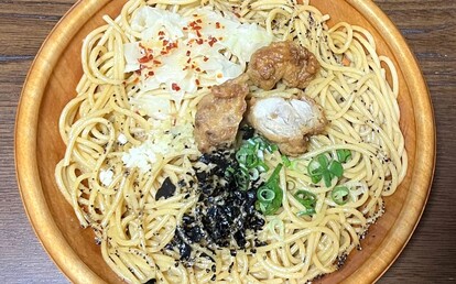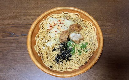キャベツにはシャキシャキとした食感がしっかりとあり、食べ進めていく中での良いアクセントに。存在感のある唐揚げも一緒に味わえるのが特徴です。唐揚げ自体の味付けはシンプルなので、他の具材や味の濃い麺とも相性抜群でした。