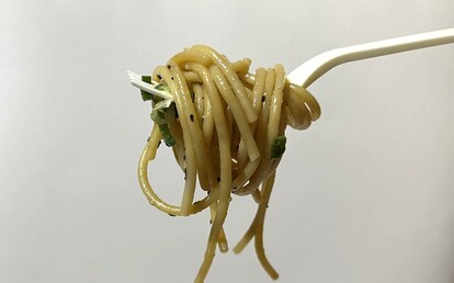 パスタ商品というと量は少なくトッピングも控えめなイメージがあるのに対し、本商品は具沢山なうえ麺も大盛り。食べ始めたときはあまりのパンチの強さに「途中で食べ飽きてしまうのでは?」と思いましたが、食欲をそそるにんにくの風味で食べ進める手が止まらず……。あっという間に完食してしまいました。