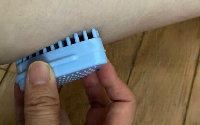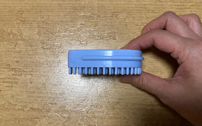 本体裏側にもブツブツとした突起が付いています。ブラシは力を入れすぎると少し痛く感じるくらいの固さなので、「痛キモチいい」がお好みの方には特にオススメ。使用後は水洗いして乾燥させましょう。