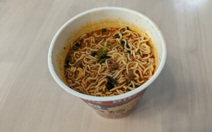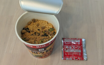 麺には適度な味付けがされていて、スープとの相性もバッチリ。BIGだけあって普通サイズのカップラーメンに比べてかなりの食べ応えで満足感も十分でした。いつものサイズじゃ少し物足りないと思っていた人にもオススメです。