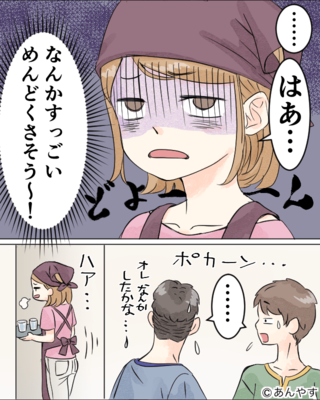 正解は「嫌そうな顔で『はぁ…』と返した」でした。 注文したラーメンが想像よりも辛く、店員にお水を頼んだ主人公。 すると店員は嫌そうな態度で「はぁ…」とため息をついたのでした。 ※こちらは実際に募集したエピソードをもとに記事化しています。 (愛カツ編集部)