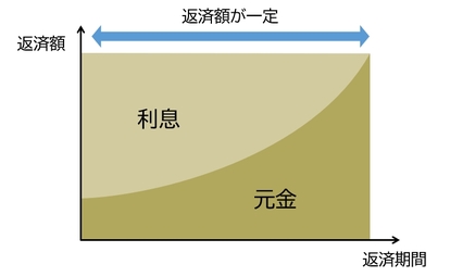 すなわち、ローンの返済方法で最も多いのが、毎月の返済額(元金+利息)が一定になる「元利均等方式」です。これには、返済初期には返済額のうち利息の占める割合が高いという特徴があります([図表1]参照)。