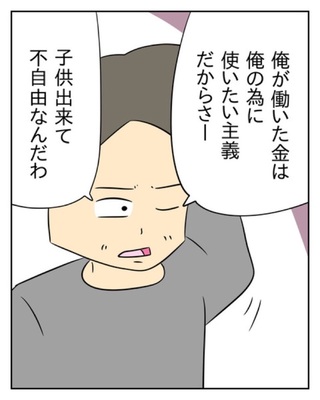 夫と共働きで娘を育てている主人公。 生活費を5万円しか払わない夫に、うんざりしていました。 指摘しても「俺は趣味が多いの!」と言い訳をします。 さらに「そんなにすぐ怒るなんて結婚に向いてない」と主人公を悪者扱いする夫。 そんな夫に「あんたのほうが結婚に向いてない。子どもいるのわかってる?」と主人公が言い返すと…。