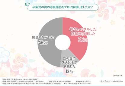 卒業式の袴姿は一度しか経験することができないため、写真撮影を行う方もいるかと思います。記念写真についてプロに依頼して撮影を行った割合はどの程度なのでしょうか。