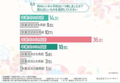 また、レンタル予約は、卒業式の6カ月前にされた方が最多であるということが明らかになりました。