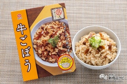 今回紹介する『まぜこみご飯の素 牛ごぼう』(価格 税込み 238円・販売中)は、牛肉とごぼうの風味を生かし、甘辛く煮込んだまぜ込みご飯の素。ほかほかご飯にまぜるだけで、手軽に美味しい牛ごぼうご飯ができあがる。
