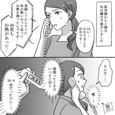 主人公は働いている間、娘を保育園へ預けていました。 毎日登園前に熱がないことを確認してから預けていたのですが…。